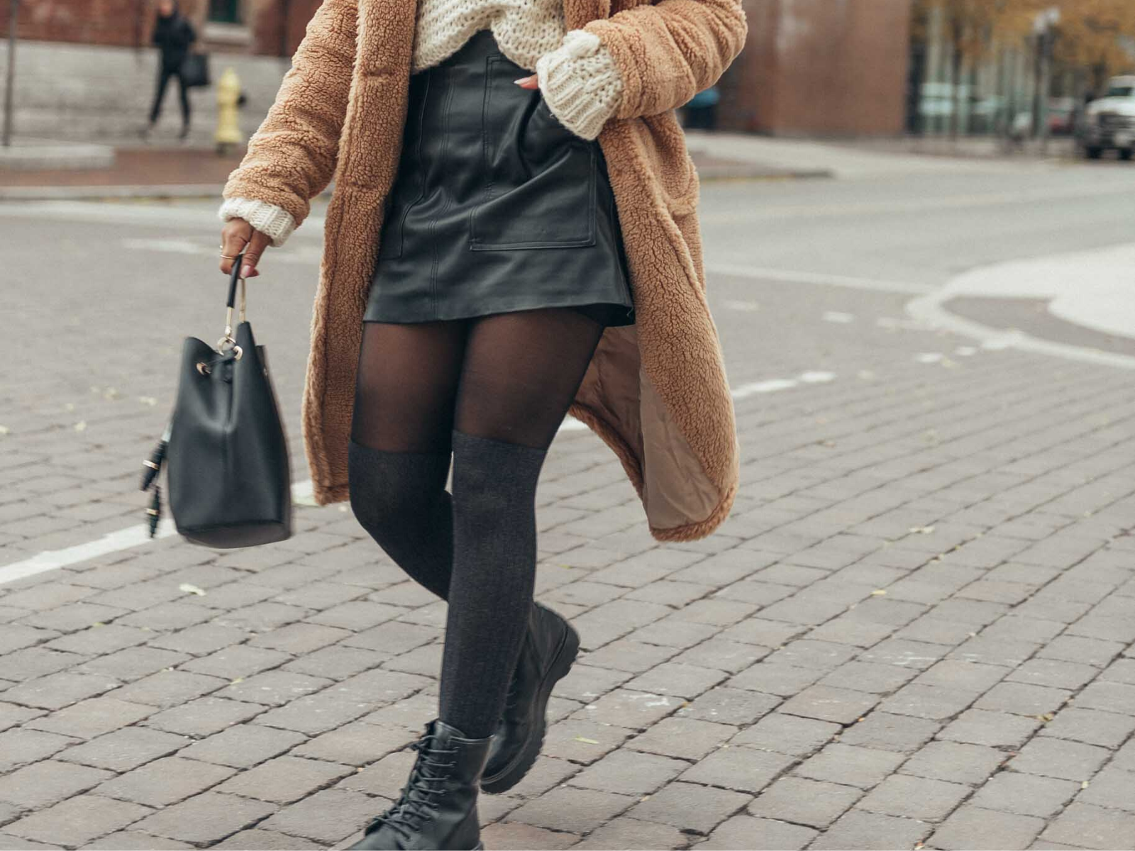 Peu importe la saison, tu me verras toujours en robe et en jupe. Quand il fait froid, j’ai besoin d’une couche supplémentaire pour protéger mes jambes et c’est là que le collant cuissardes effet chaussette de Rachel entre en jeu. Non seulement il te tiendra bien au chaud, mais tu n’auras plus besoin de toujours tirer sur tes bas hauts pour les maintenir en place. J’adore agencer ce collant avec une jupe en cuir ou des shorts pour un look aussi chaud que tendance.