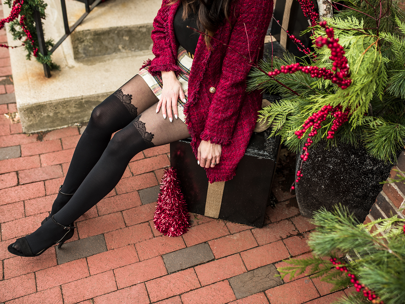 Avec une touche de carreaux, une pincée de floral, une touche de tulle et la parfaite paire de collants, tu obtiens la parfaite tenue des Fêtes en un rien de temps !