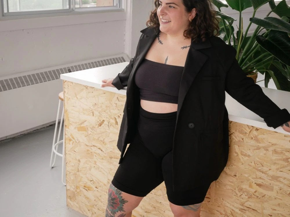 Bien que le short de cycliste puisse paraître intimidant, il offre en fait beaucoup plus de couverture qu’un short de yoga ou un short de jeans - j’adore ! La couverture supplémentaire sur les cuisses me donne un petit regain de confiance quand je sors de la maison.