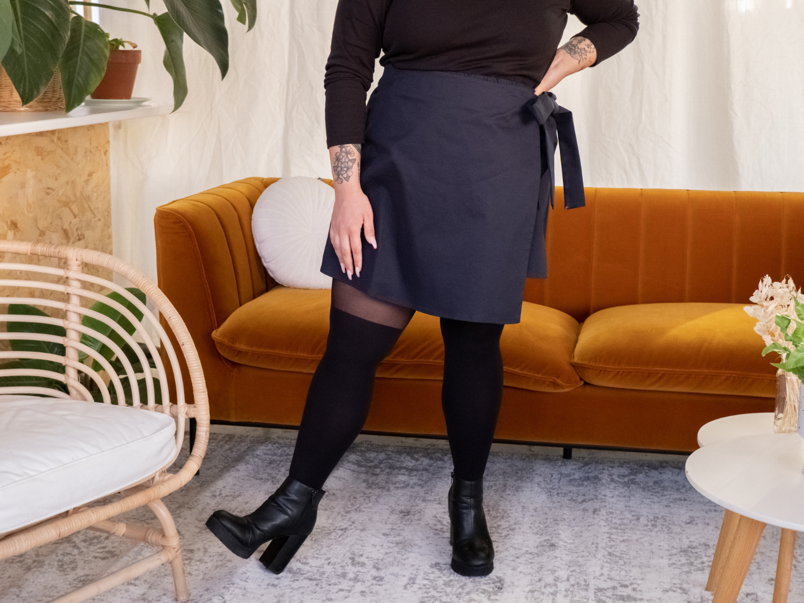 L'accessoire idéal à porter avec tes collants cuissardes est bien évidemment une jupe courte ! Nous ne pouvions donc pas passer chez Lachapelle Atelier sans jeter un coup d'œil à leurs jupes. Pour un look simple, mais tendance, on opte pour le collant cuissardes ligne qui s’agence à la perfection avec la mini-jupe Alberte de la marque.